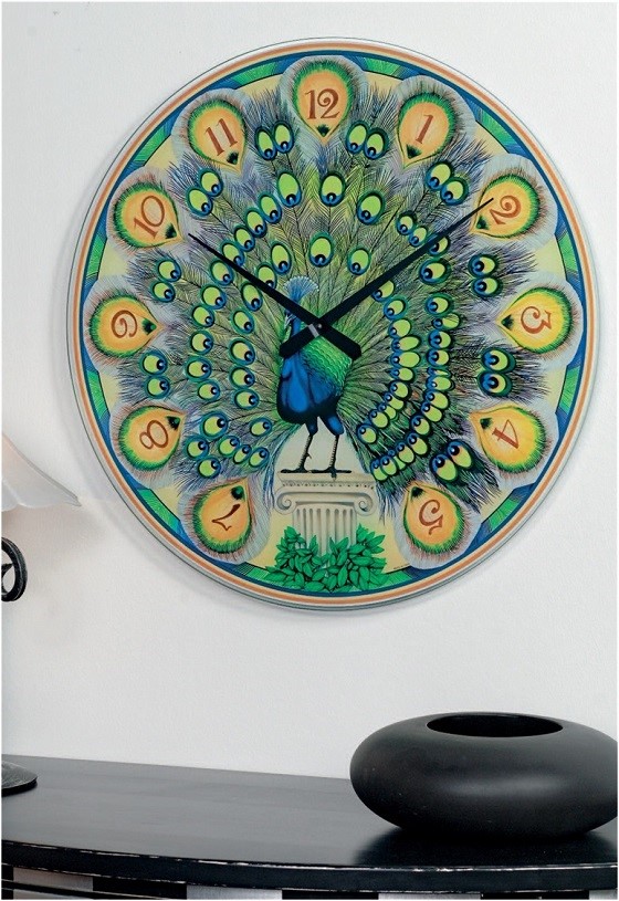 将孔雀开屏的吉祥意象与钟表的圆形形态完美融合。孔雀在西方世界里是充满积极色彩的生物,被视为宇宙和太阳,奢华与财富的象征。